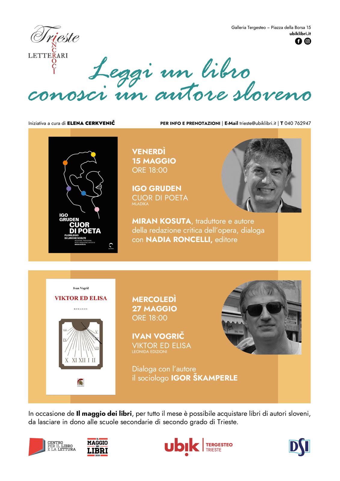 V okviru pobude Preberi knjigo, spoznaj slovenskega avtorja, ki jo prireja kulturna delavka Elena Cerkvenič, vas vabimo na predstavitev italijanskega prevoda pesmi Iga Grudna Cuor di poeta. Z urednikom in prevajalcem knjige Miranom Košuto se bo pogovarjala urednica Mladike Nadia Roncelli. Dogodek v knjigarni Ubik bo potekal v italijanskem jeziku.